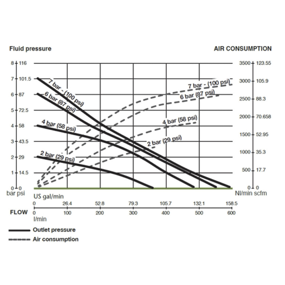 Bomba neumática de doble diafragma 650lts/min 2 Pulgadas