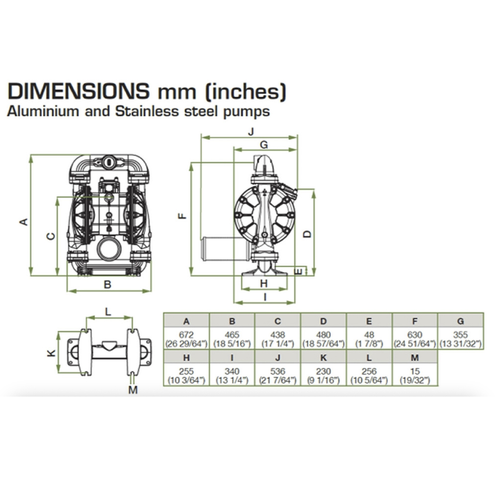 BOMBA NEUMÁTICA DE DOBLE MEMBRANA 2″, UP20, SERIE PIVOT, ALUMINIO-ALUMINIO-NBR-NBR, BSP-CENTRAL-ROSCADA
